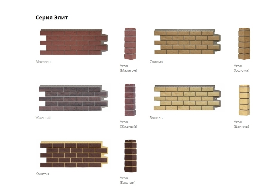 Фасадные панели Grand Line Состаренный кирпич Элит Махагон/Солома/Жженый/Ваниль/Каштан