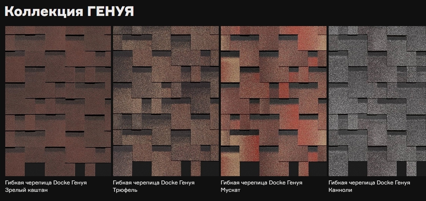Гибкая черепица Döcke PIE Premium/ГЕНУЯ Какао/Кофе/Кунжут/Амаретто/Трюфель/Канноли/Мускат/Зрелый каштан