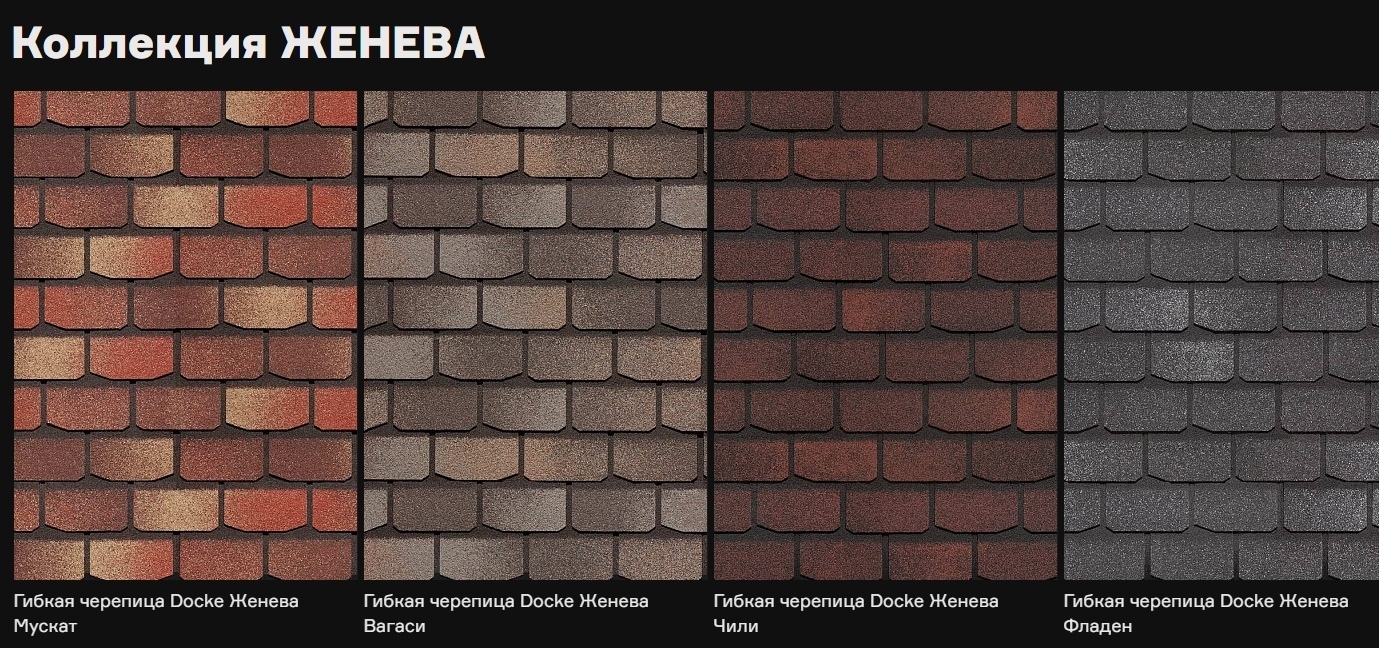 Гибкая черепица Döcke PIE Premium/ЖЕНЕВА Чили/Фладен/Изюм/Вагаси/Арахис/Кофе/Мускат
