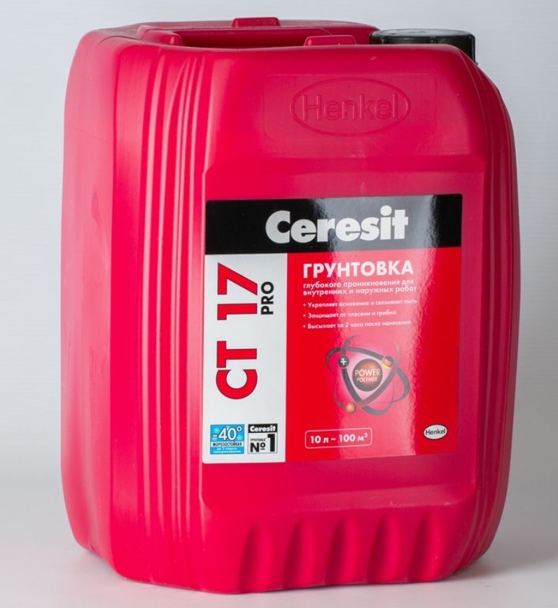 Универсальная грунтовка глубокого проникновения Ceresit СТ17 на водной основе для внутренних и наружных работ.