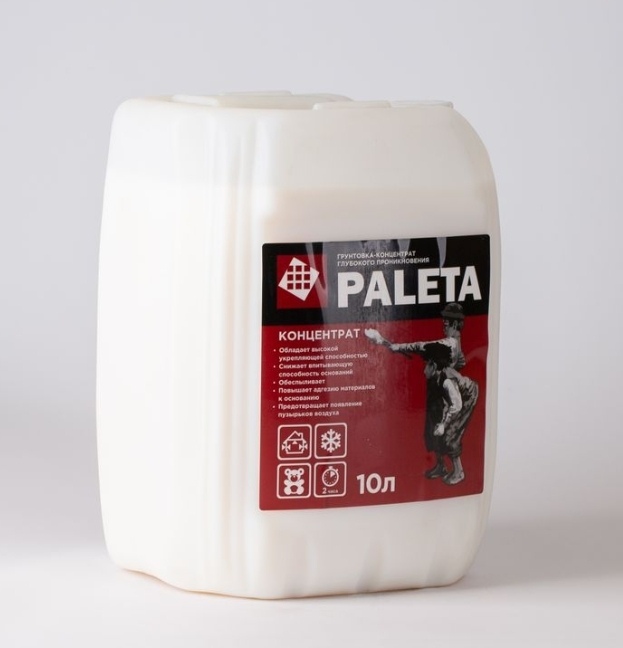 Грунтовка-концентрат Paleta, универсальная, глубокого проникновения, 10л - концентрированный раствор для грунтования поверхностей стен, потолков, пола, для внутренних и наружных работ.