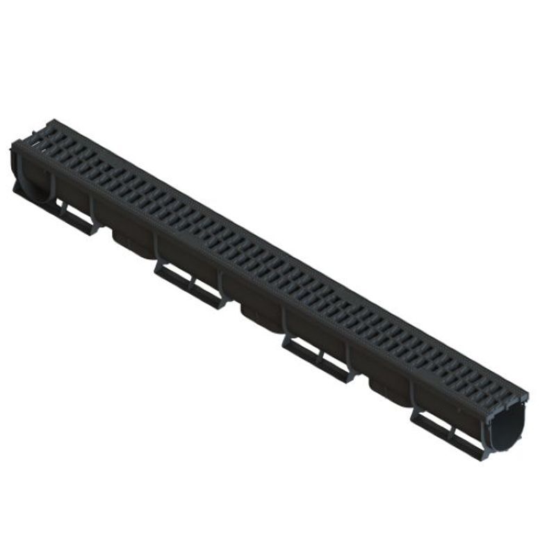 Комплект пластиковых элементов Стандарт парк системы поверхностного линейного водоотвода (лоток водоотводный и ячеистая решетка водоприемная к нему) размером (Д×Ш×В) 1000×90×90 мм, с системой крепления решетки на защелках, для создания водоотводных каналов с гидравлическим сечением 70 мм, для установки в местах с нагрузкой на поверхность до 1,5 тонн.