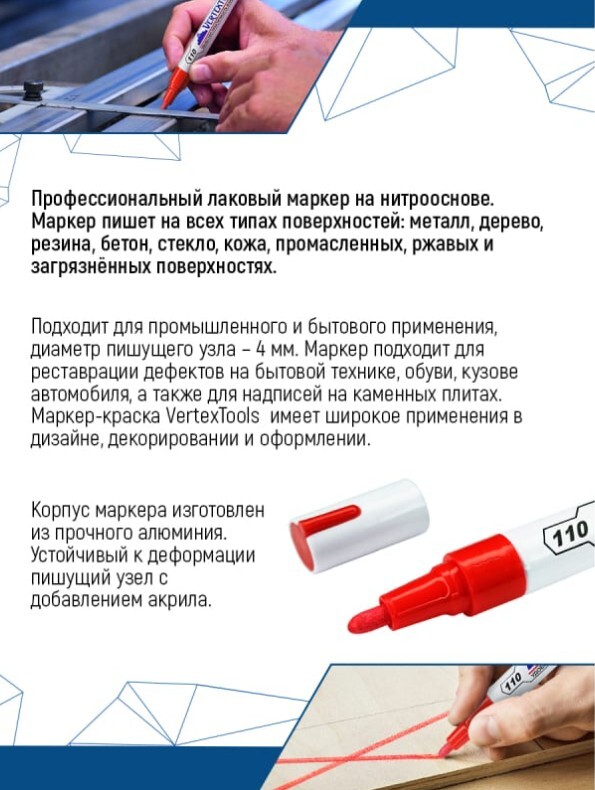 Маркер красящий VERTEXTOOLS красный (12шт/уп)