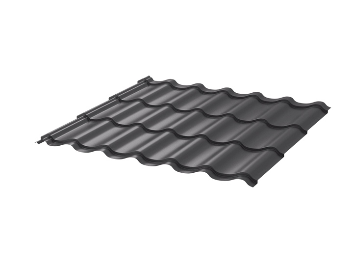 Цена за 1 м2. . Металлическая черепица Монтеррей 0.45 ПЭ RAL7024 серый графит, классический профиль, который копирует натуральную керамическую черепицу.