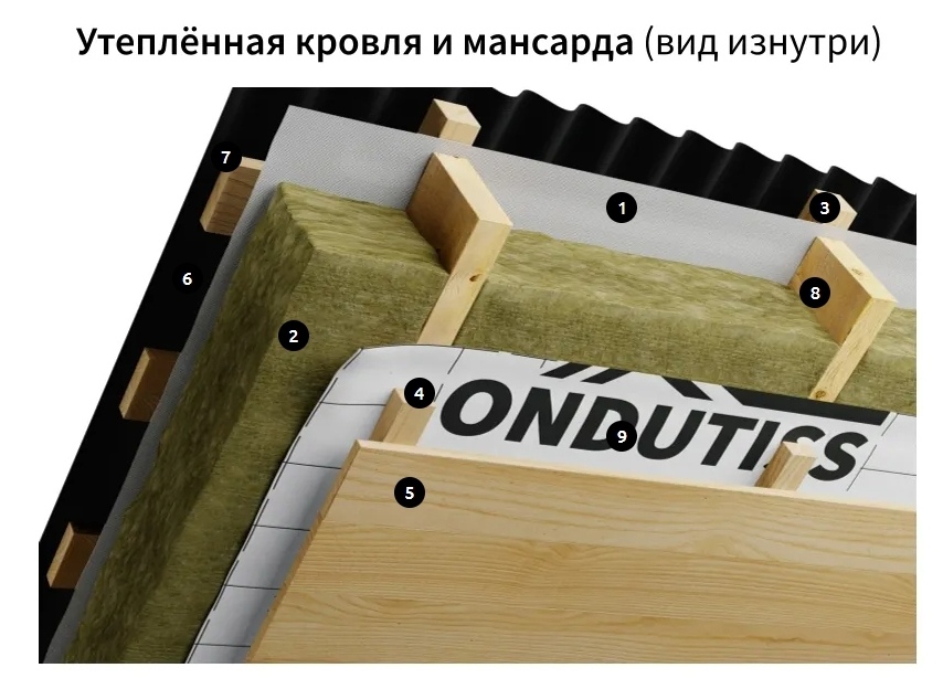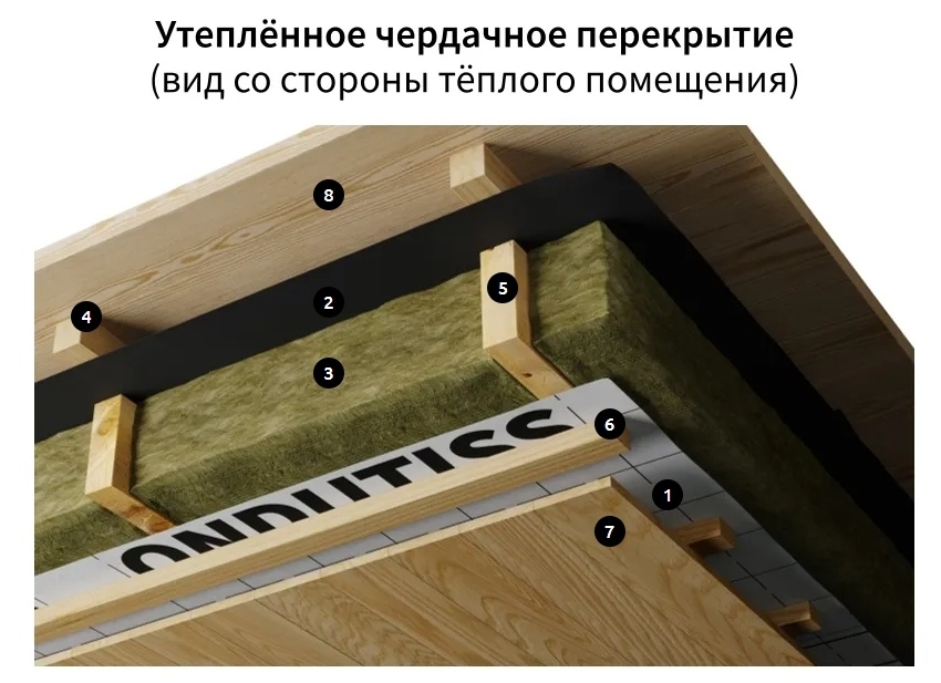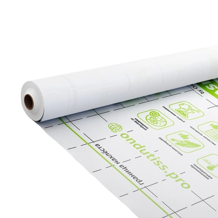 Двухслойная плёнка с низкой паропроницаемостью, хорошей прочностью и водостойкостью. Обеспечивает защиту утеплителя от водяных паров изнутри помещения.