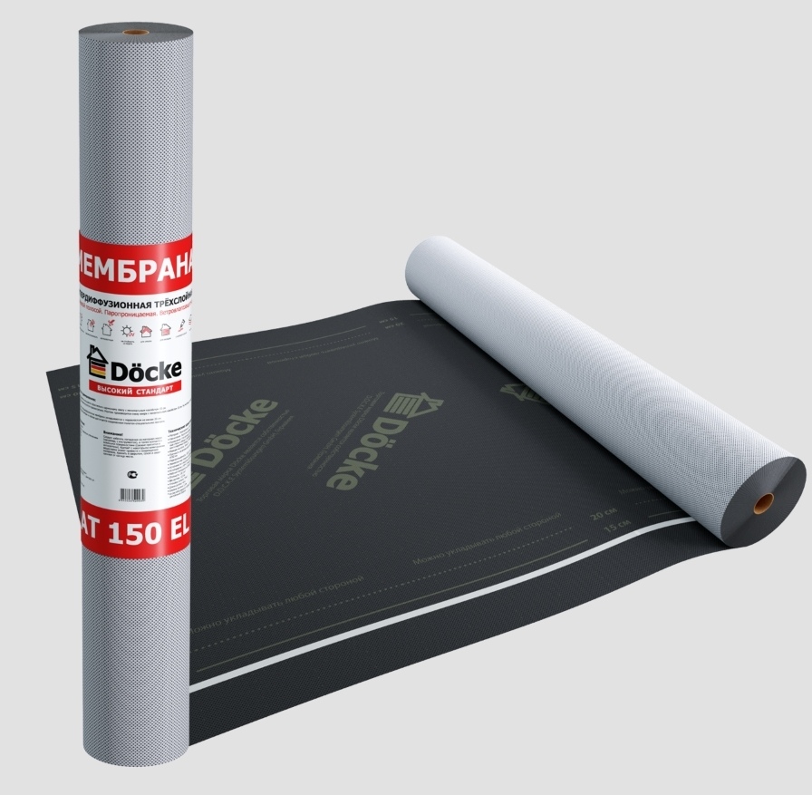 Супер диффузионная мембрана АT 150 EL трёхслойная, универсальная с клеевой полосой Döcke (70м2)