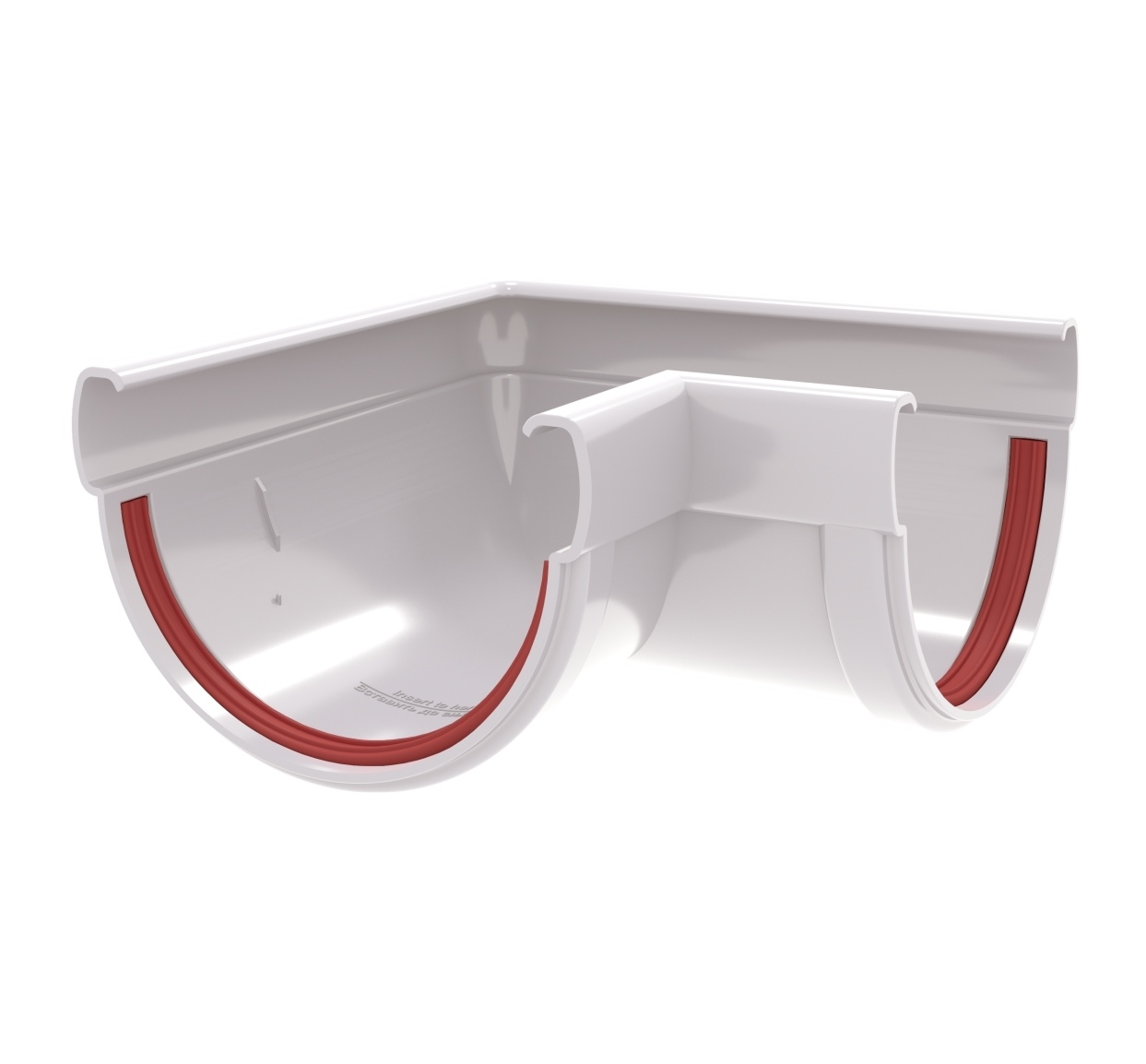 Угол желоба соединяет два желоба под углом 90° как на внешних, так и на внутренних углах фасада.