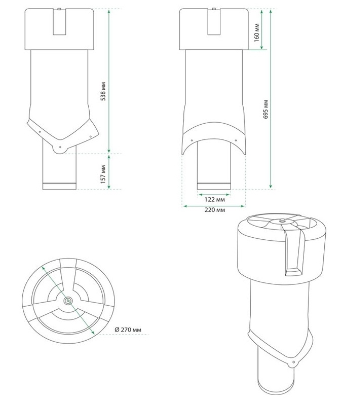 Выход вентиляции Krovent Pipe-VT 125is/500 красный/коричневый/серый, зеленый/кирпичный/черный